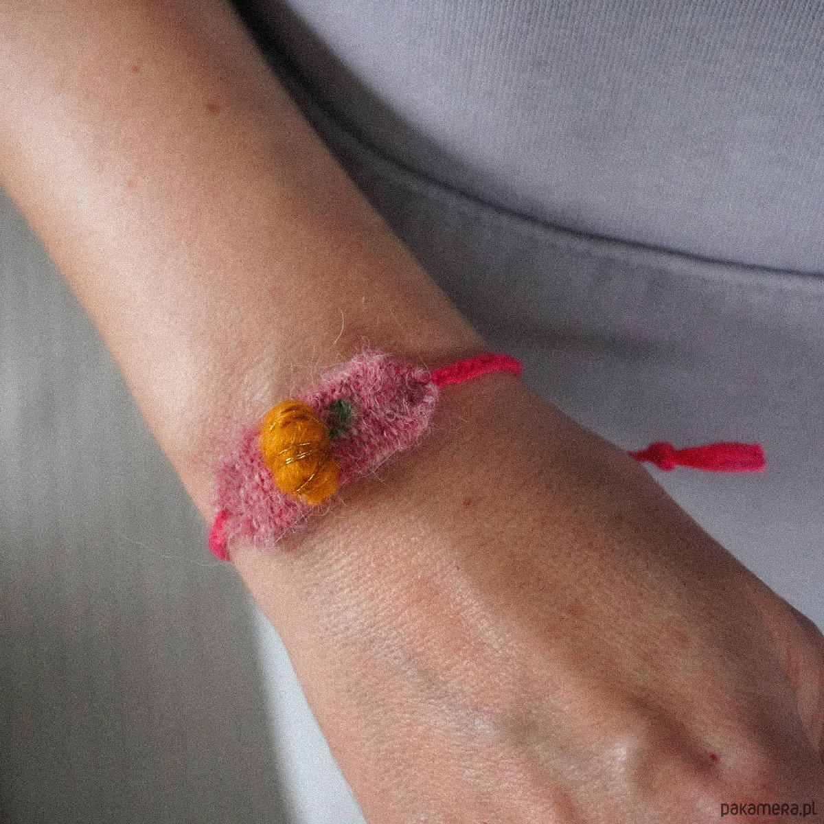 Bransoletka haftowana i wykonana ręcznie - dynia