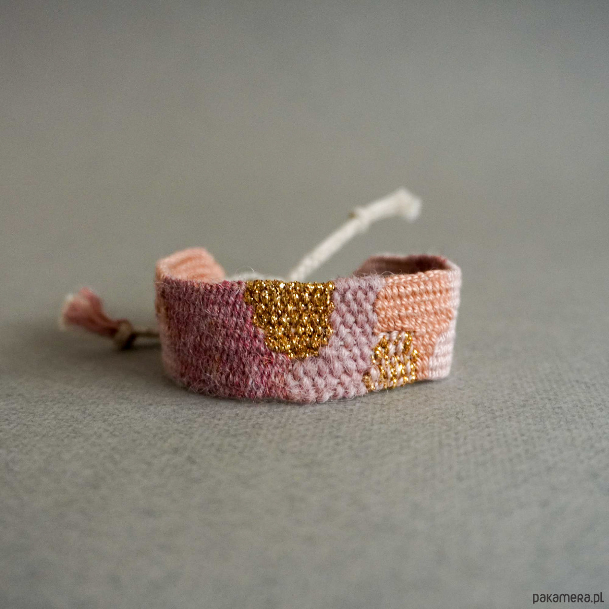 Bransoletka handmade, ręcznie robiona na krośnie w odcieniach różu