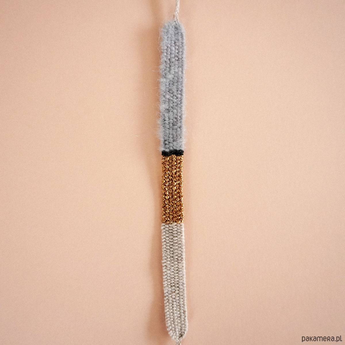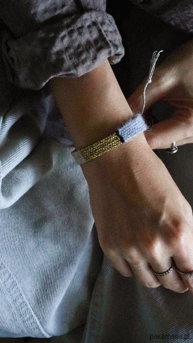 Minimalistyczna bransoletka tkana na krośnie, w paski. W innej ofercie jest w zestawie z bransoletką z haftowanym serduszkiem.