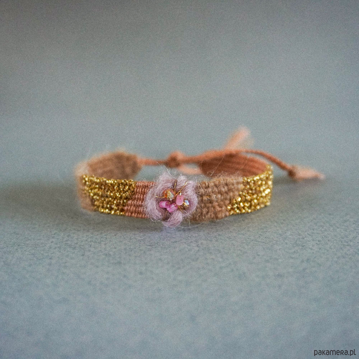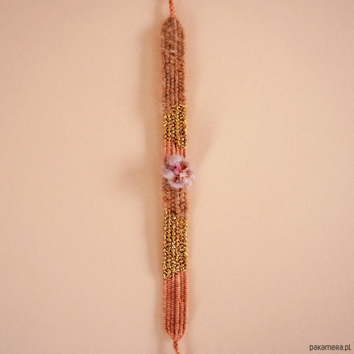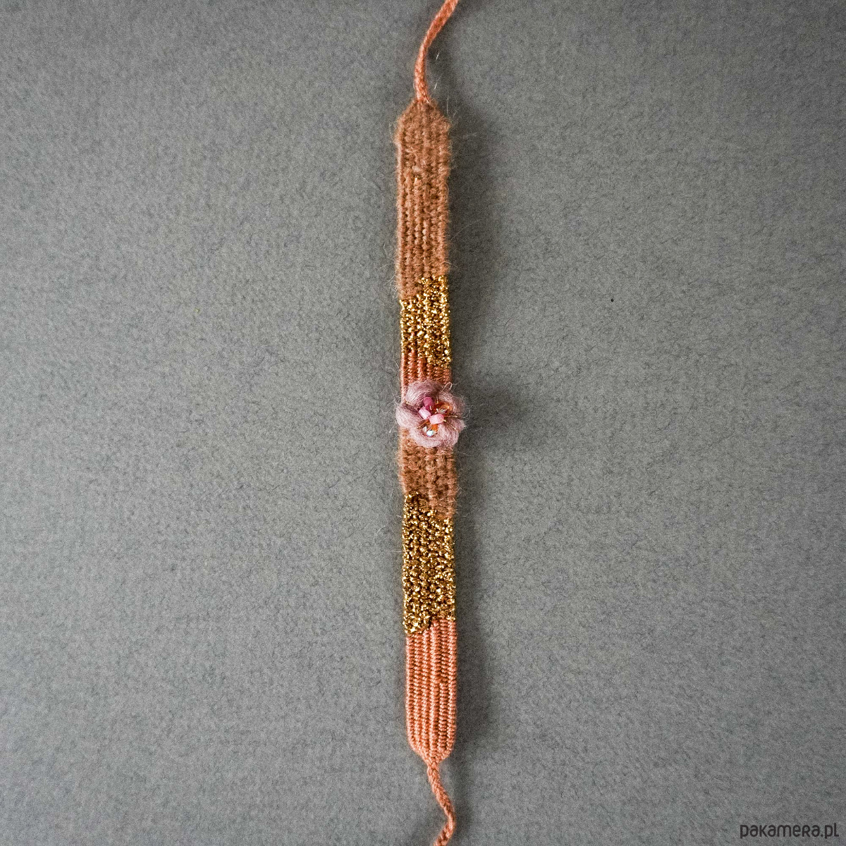 Bransoletka handmade z nici z kwiatuszkiem i koralikami