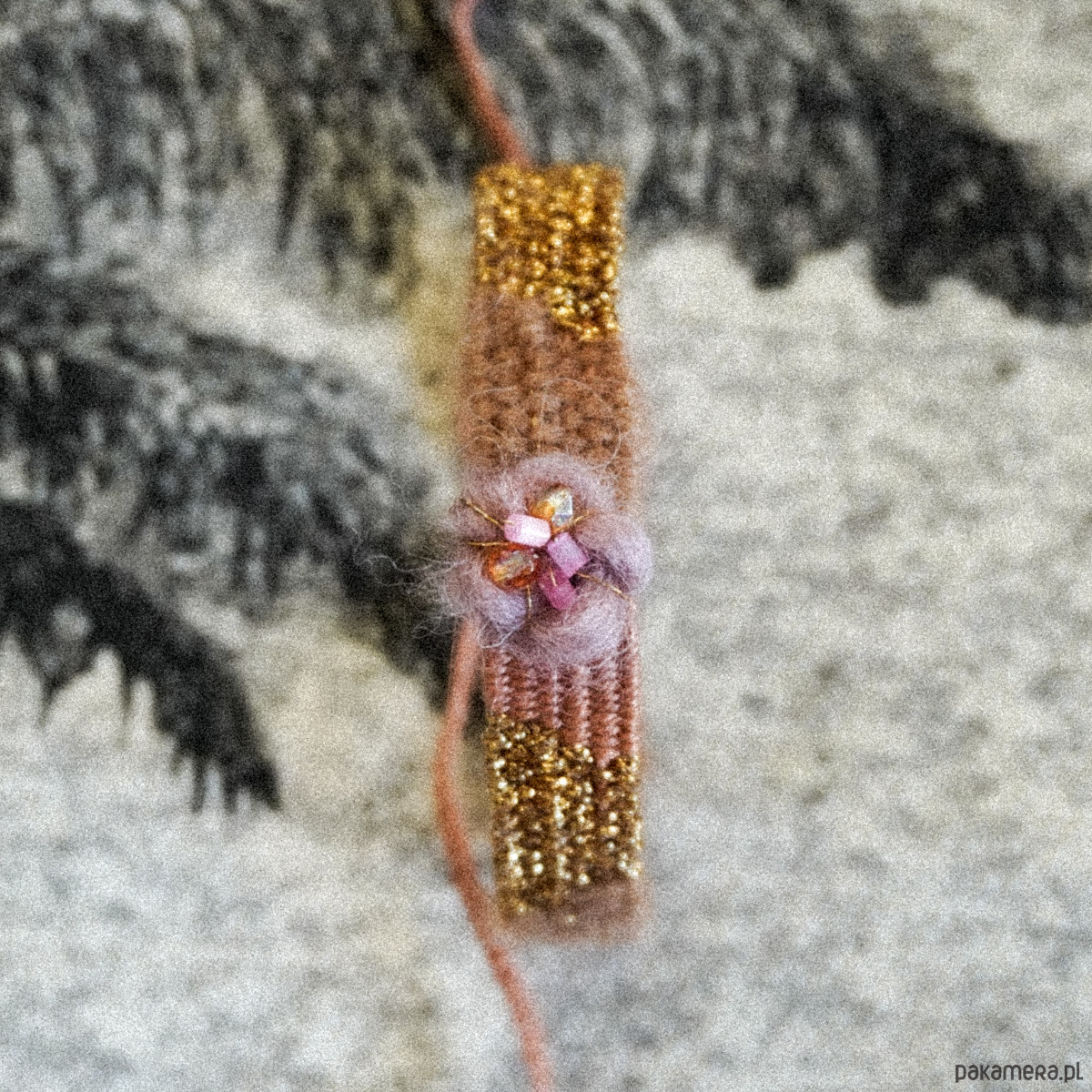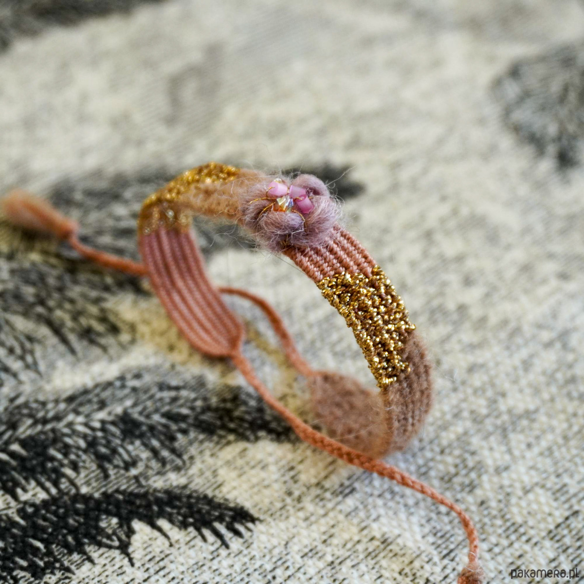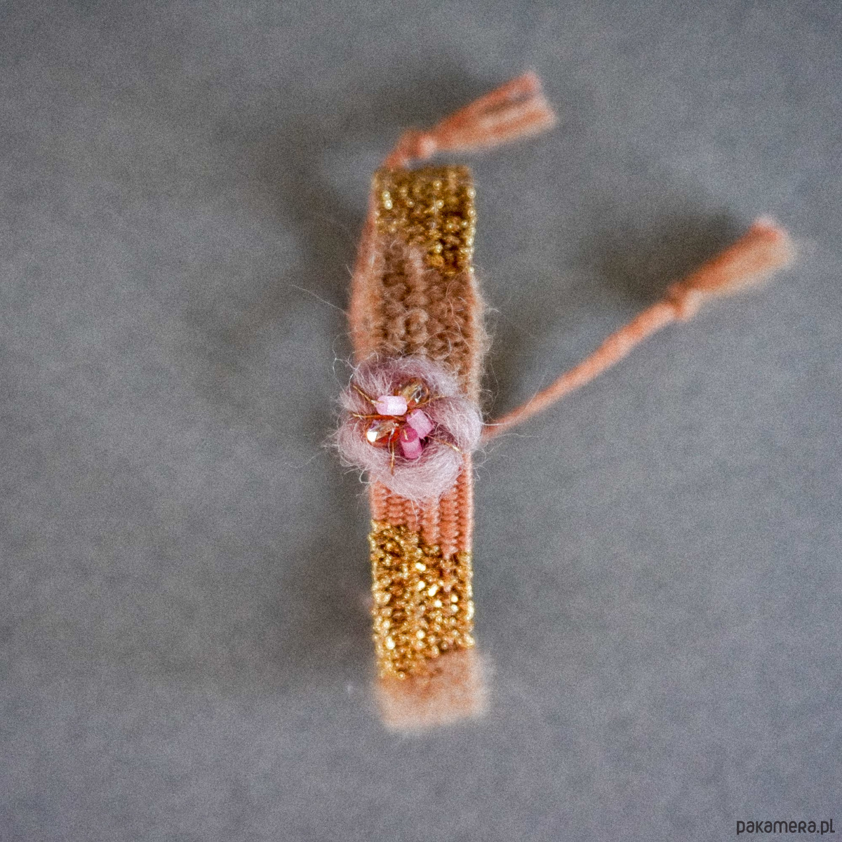 Bransoletka tkana na krosnie - unikat. Niezwykłe połączenie faktur nici i technik wykonania tworzą niesamowity efekt. Szerokość części tkanej to niecałe 1,5 cm, długość części tkanej to około 14, 15 cm. Bransoletkę wiąże się samodzielnie na supełek. Polecam gorąco♡. Bransoletki są estetycznie zapakowane, więc idealnie nadają się na prezent.
