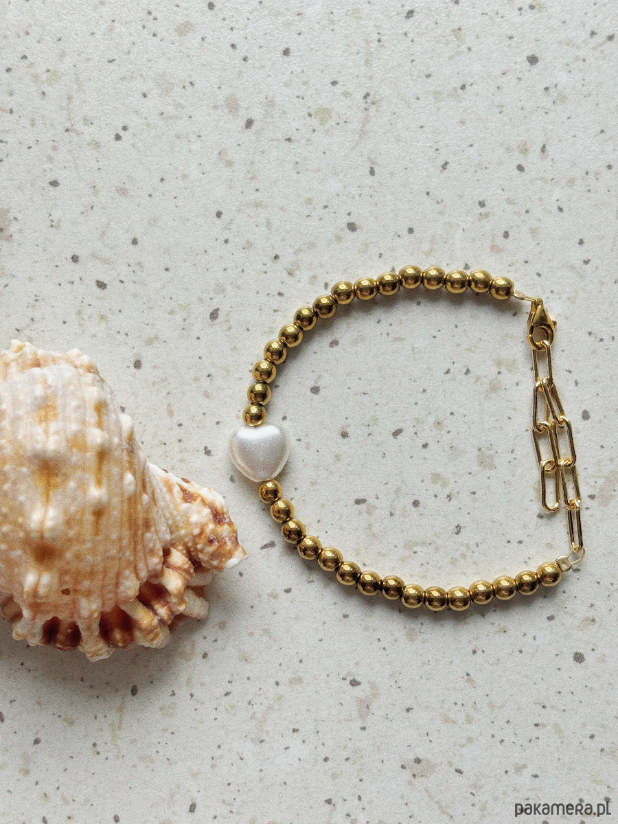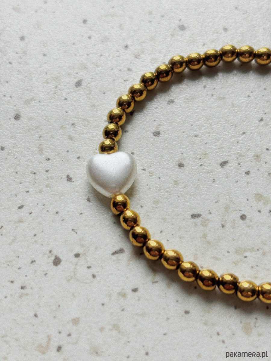 Bransoletka wykonana jest na lince jubilerskiej z użyciem hematytu, serduszka oraz zapięcia ze stali ch.