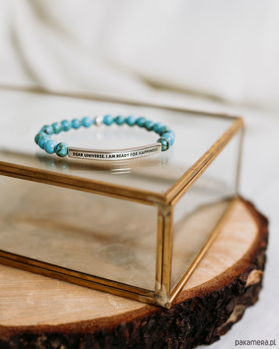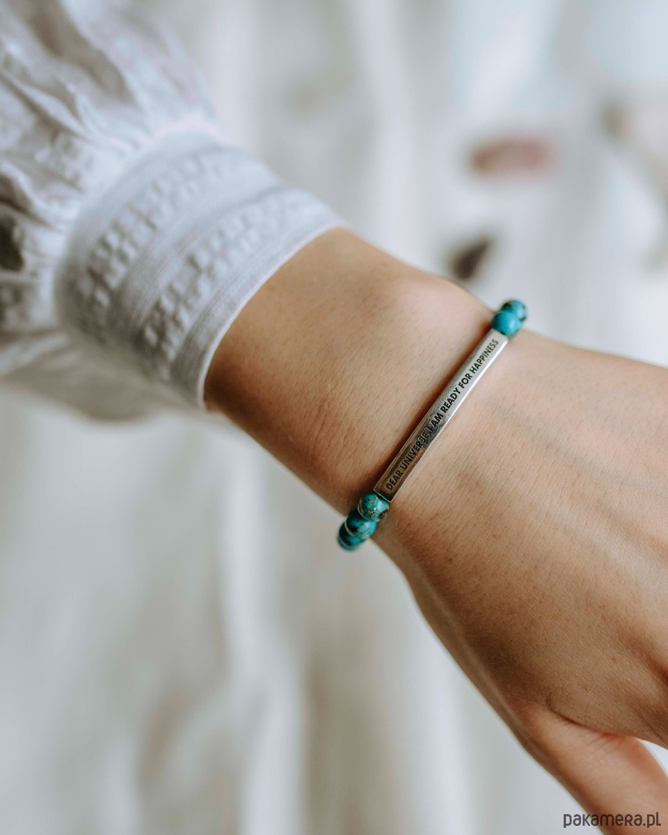 Bransoletka HOWLIT TURKUSOWY ze srebrną blaszką