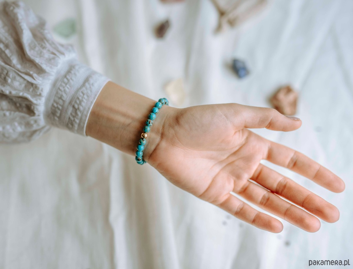 • kamienia naturalnego howlitu turkusowego, średnica koralików: 6mm,