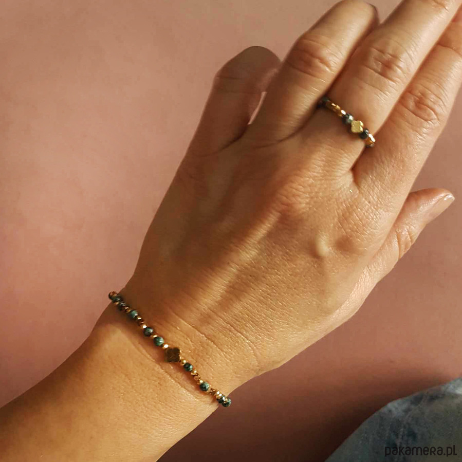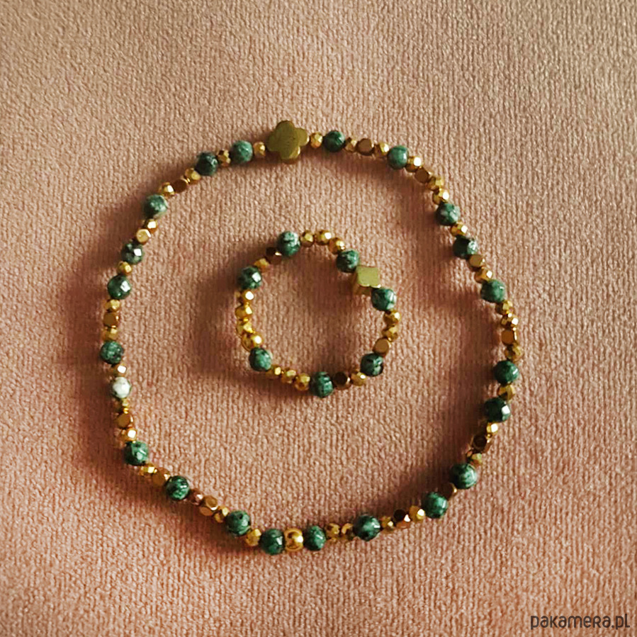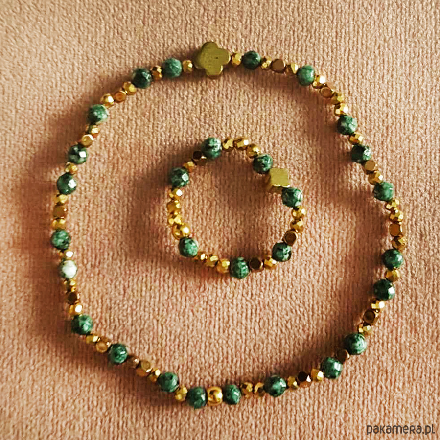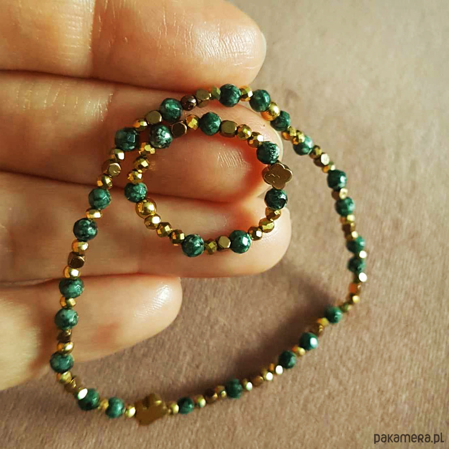 Nanizany z kamieni naturalnych w odcieniach szmaragdowych.
