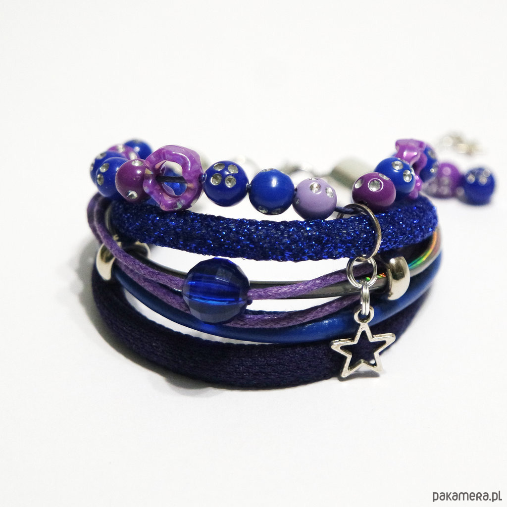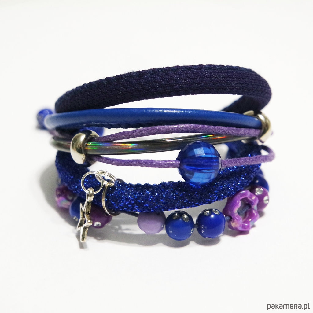 Bransoletka - Indygo, fiolet - rzemienie, koraliki