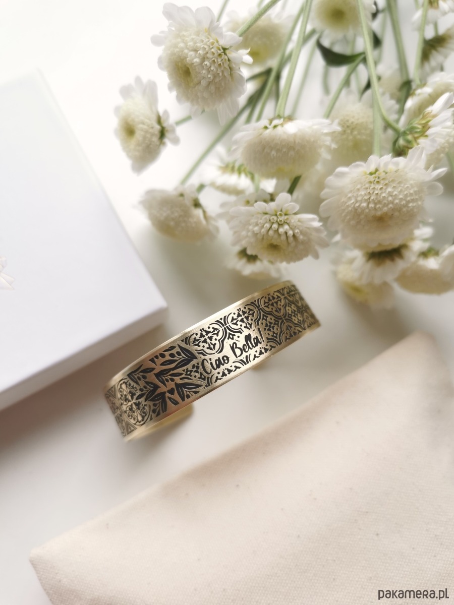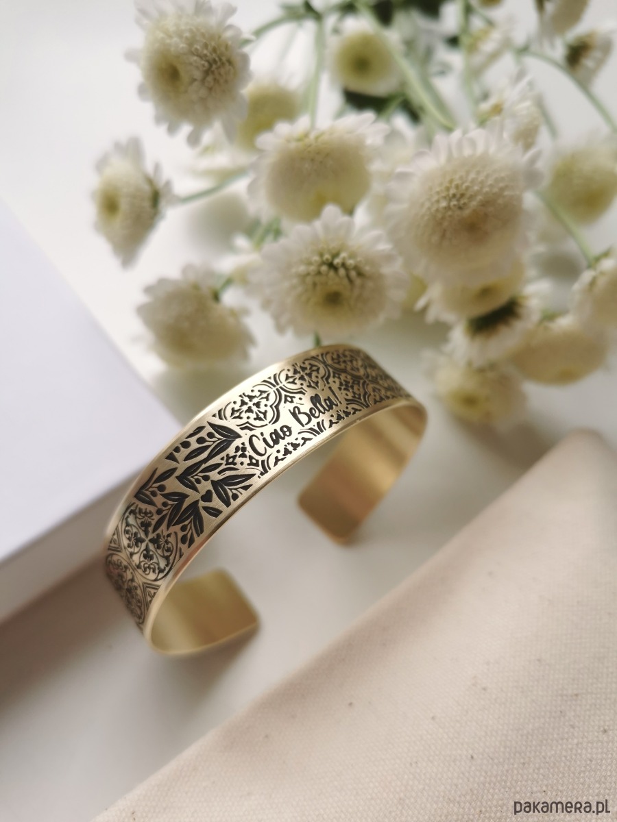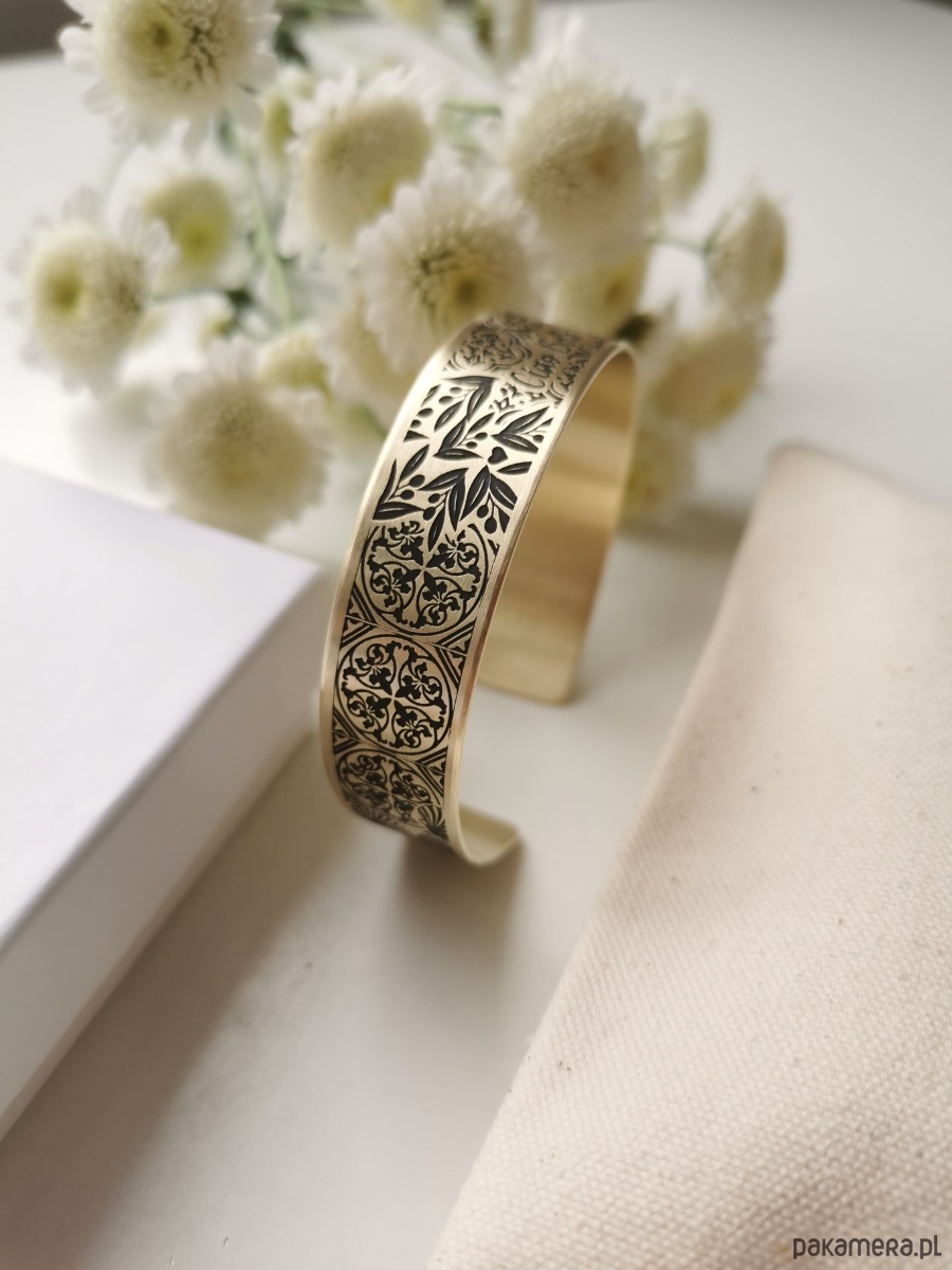 Nowa bransoletka ma kolor jasno złoty, wraz z upływem czasu mosiądz nabiera szlachetnej barwy starego złota.