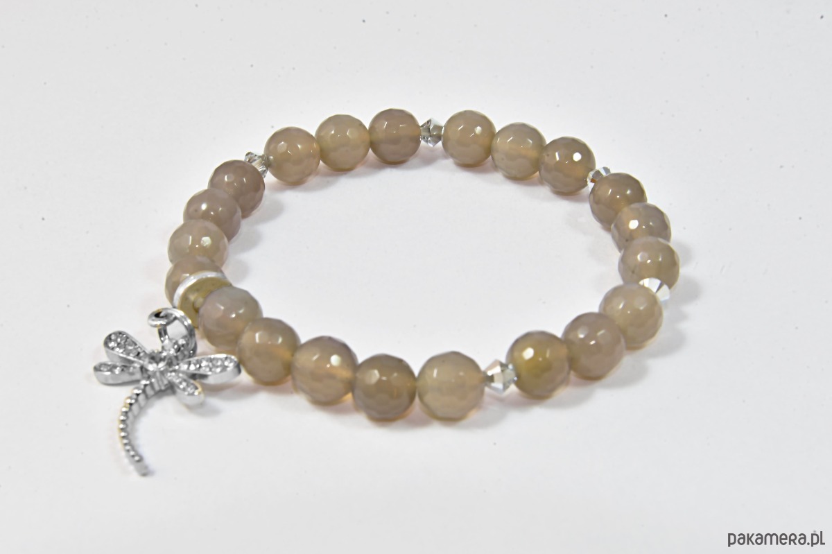 Delikatna i elegancka bransoletka z fasetowanych kul jadeitu. Subtelna szarość pięknie komponuje się z kryształkami Swarowskiego. Bransoletka świetnie prezentuje się na nadgarstku i na pewno ozdobi niejedną kreację.