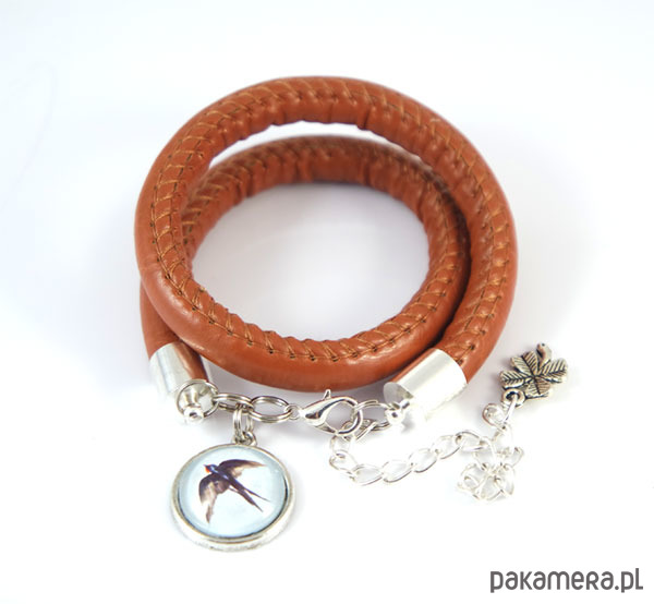 Bransoletka - Jaskółka - rzemień, owijana