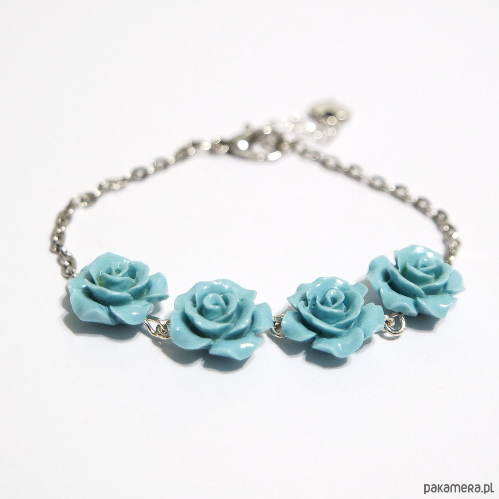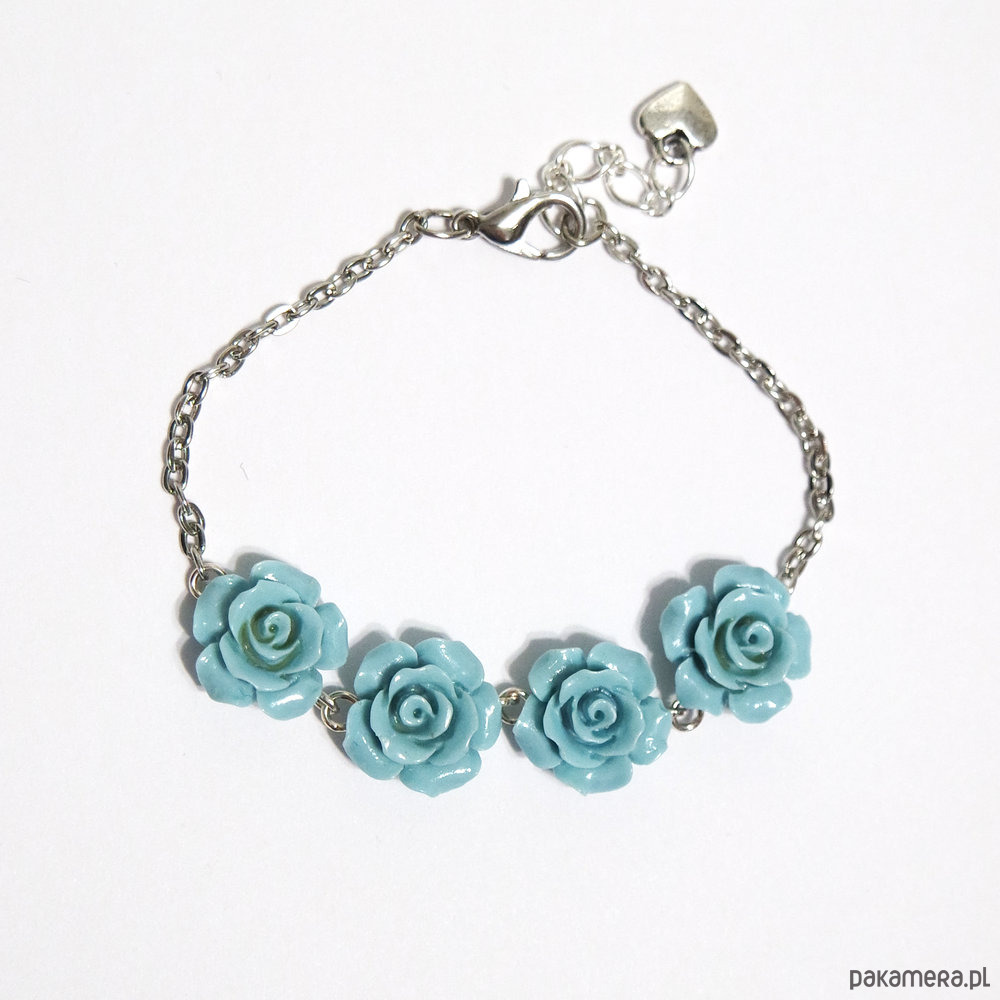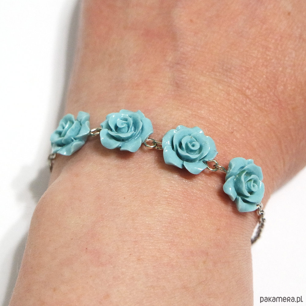 Średnica róży w bransoletce ok.12 mm. Długość bransoletki 16 cm plus przedłużka.