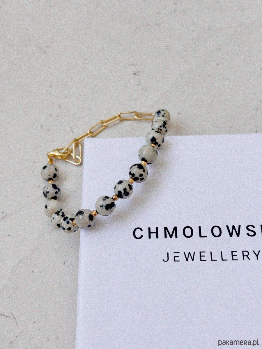 Bransoletka wykonana jest na lince jubilerskiej z użyciem przekładek z hematytu, łańcuszka i zapięcia ze stali ch.