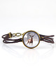 Grafika ukryta w delikatnej bransoletce pod osłoną przeźroczystego półokrągłego szkiełka.