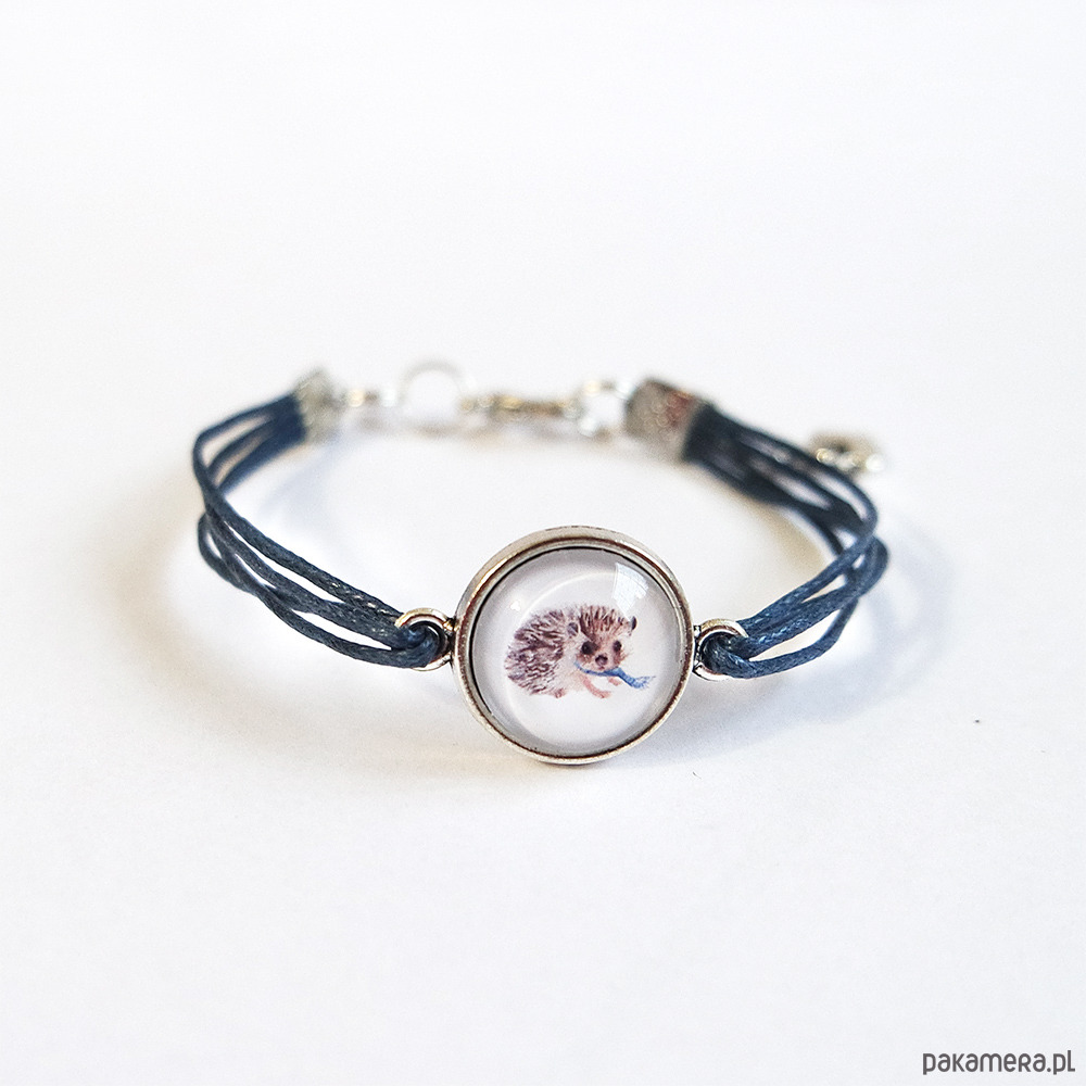 Bransoletka - Jeżyk - granatowa, sznurki