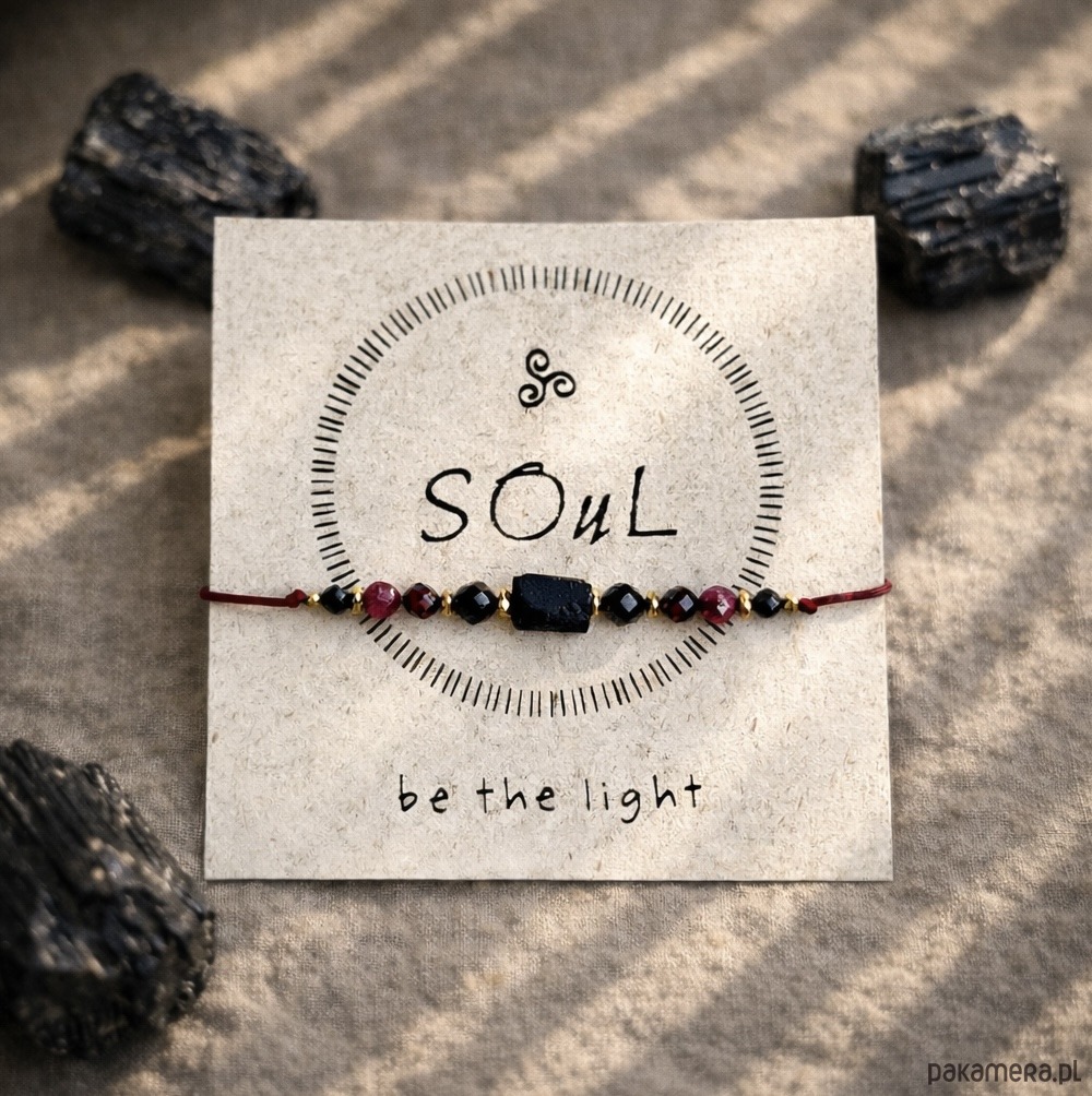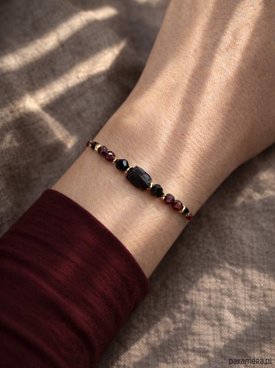 - czarny turmalin – jeden z najsilniejszych kamieni ochronnych. Pomaga chronić energię, uziemia i wspiera w zachowaniu równowagi w trudniejszych momentach.