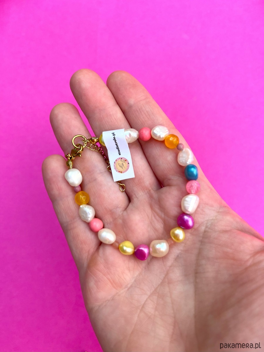 Skład: perła słodkowodna, jadeit, howlit, rodonit