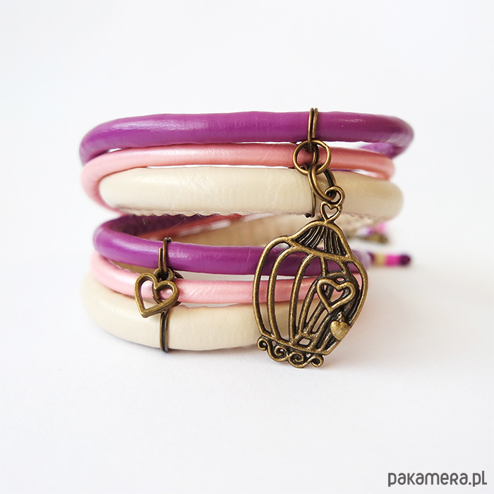 Bransoletka - Klatka - rzemienie, owijana