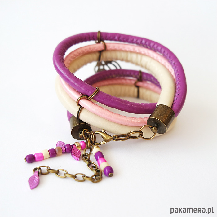 Bransoletka wykonana jest z rzemieni z ekoskóry.