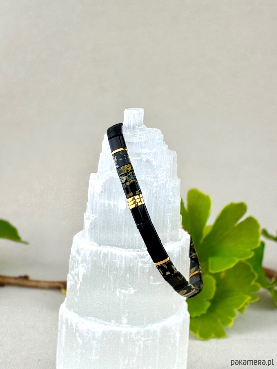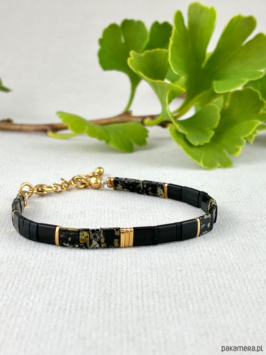 Bransoletka z szklanych japońskich koralików Miyuki i hematytów .