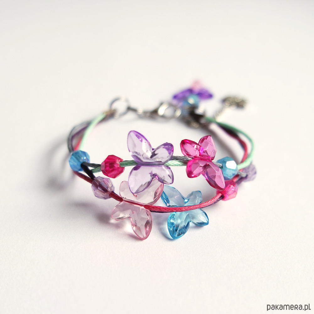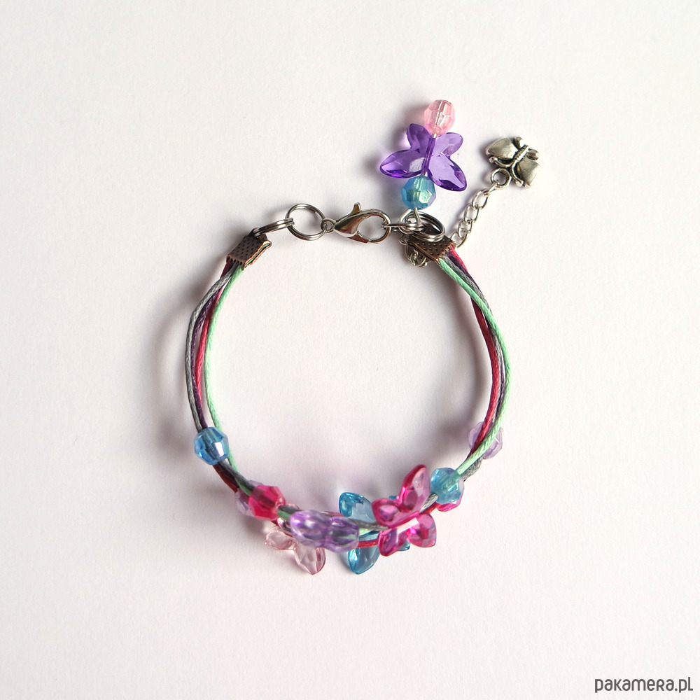 Bransoletka - Kolorowe motyle 3 - sznureczki