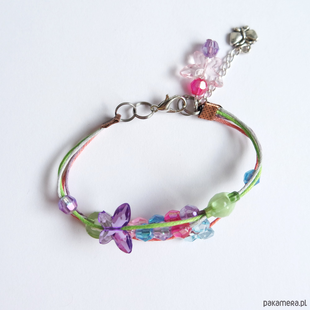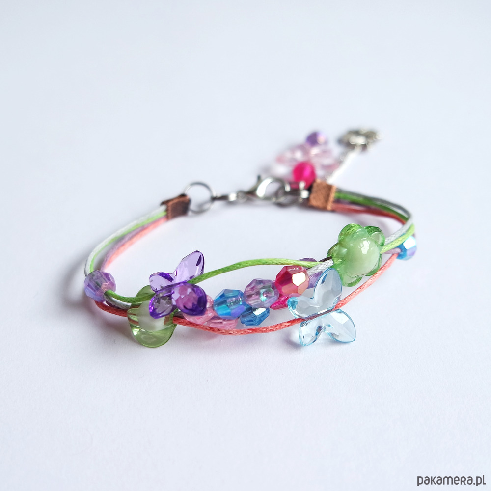 Bransoletka - Kolorowe motyle 4 - sznureczki