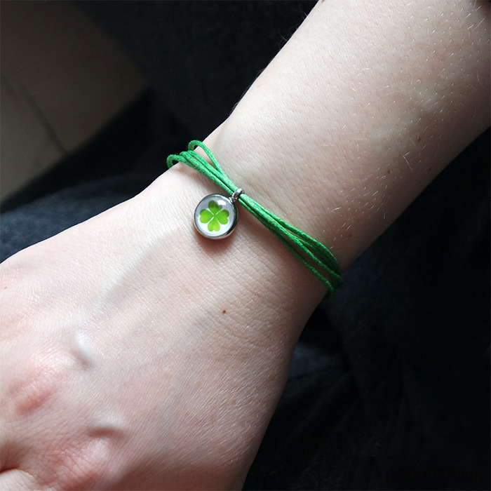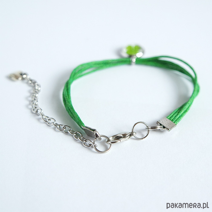 Bransoletka wykonana jest z woskowanych sznureczków.