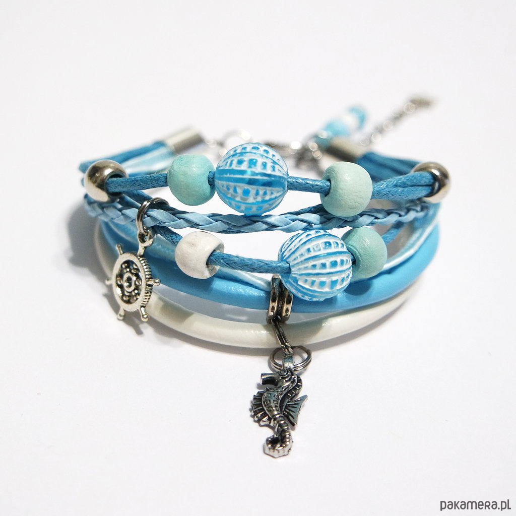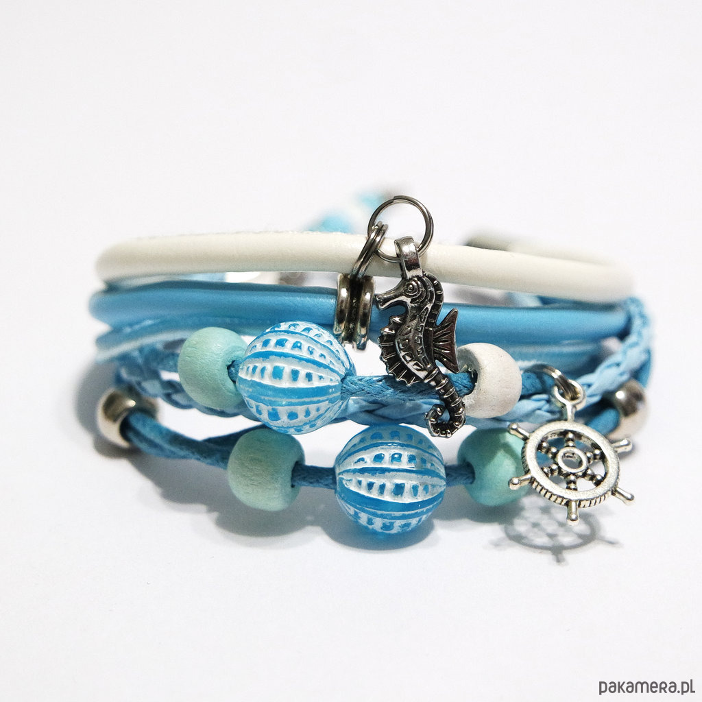 Bransoletka - Konik morski, ster - rzemienie, marynarska