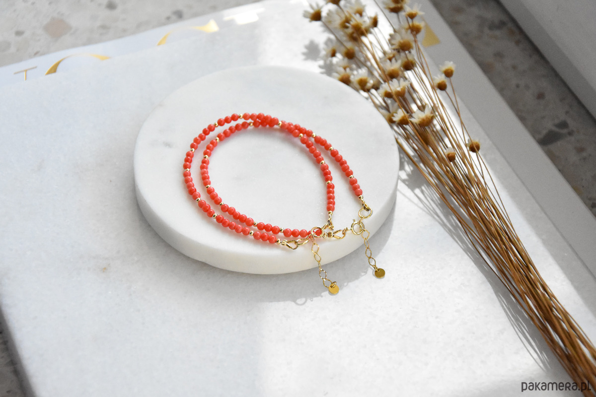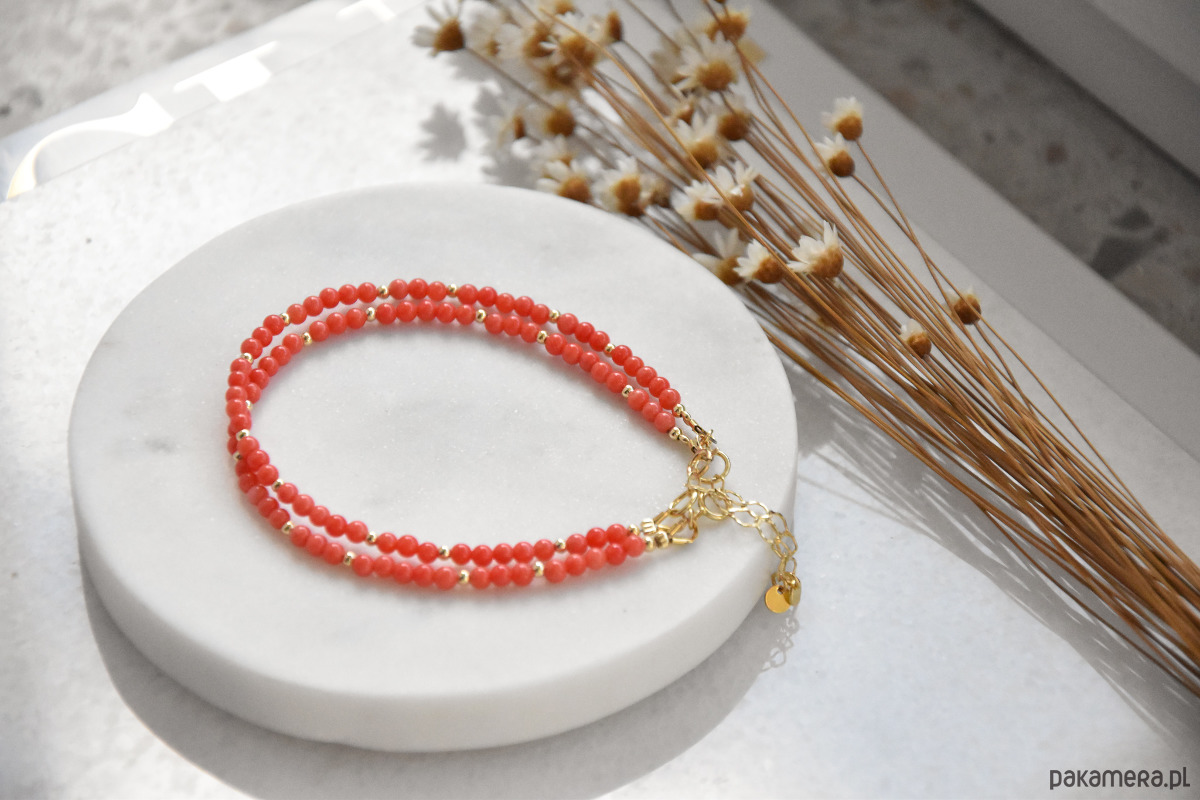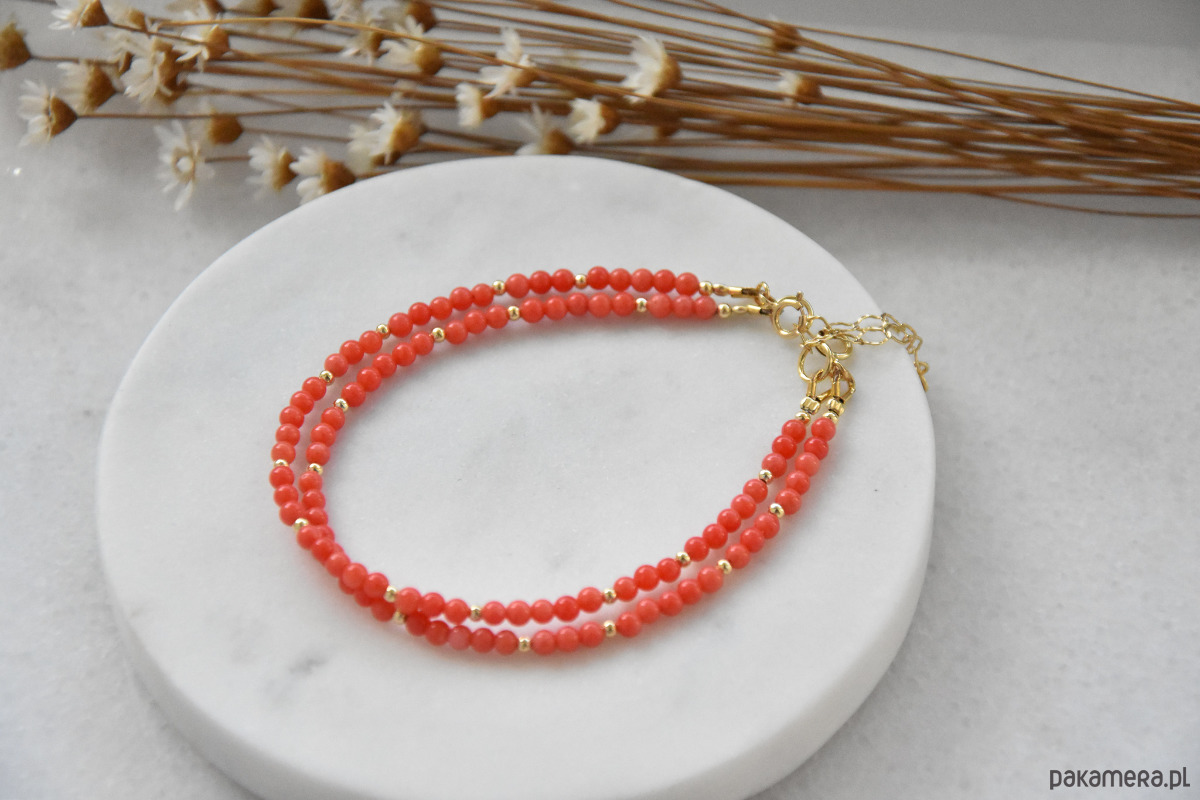 Bransoletka koral ze srebrem złoconym i klasycznym zapięciem