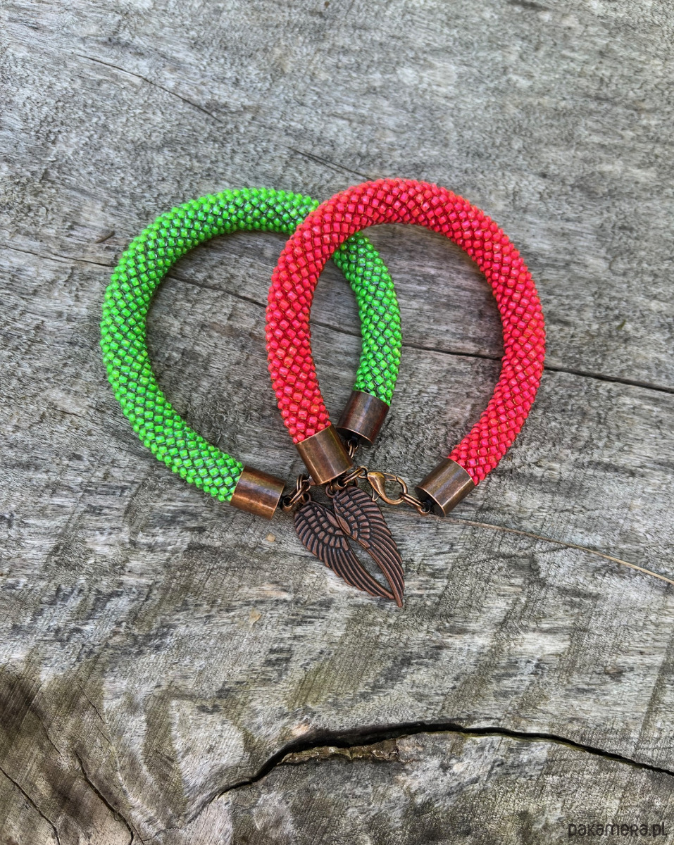 Szklane koraliki w neonowych, intensywnych barwach przyciągają wzrok. Bransoletka jest bardzo lekka, miękko układa się na nadgarstku. Wygodna do noszenia na co dzień.