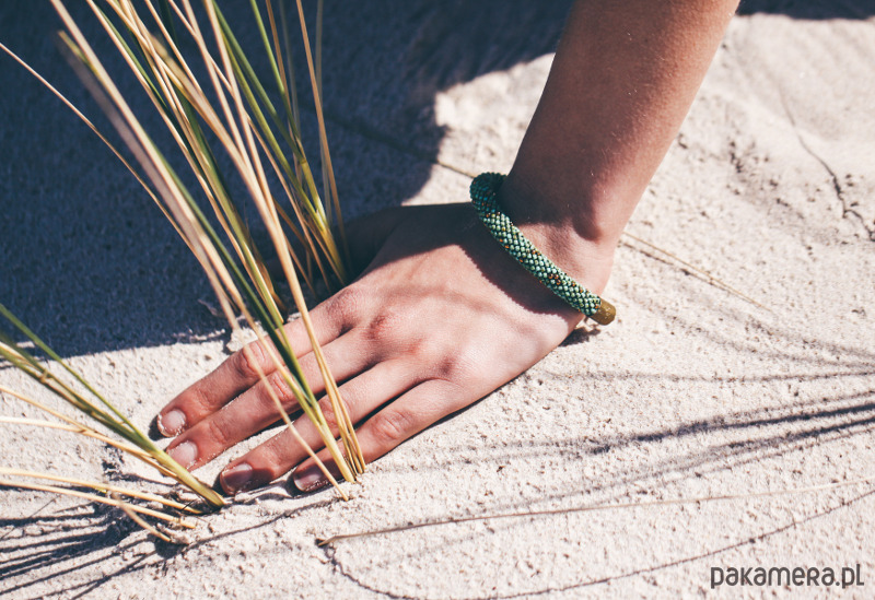 Szklane koraliki mienią się kolorami i przyciągają wzrok. Bransoletka jest bardzo lekka, miękko układa się na nadgarstku. Wygodna do noszenia na co dzień.