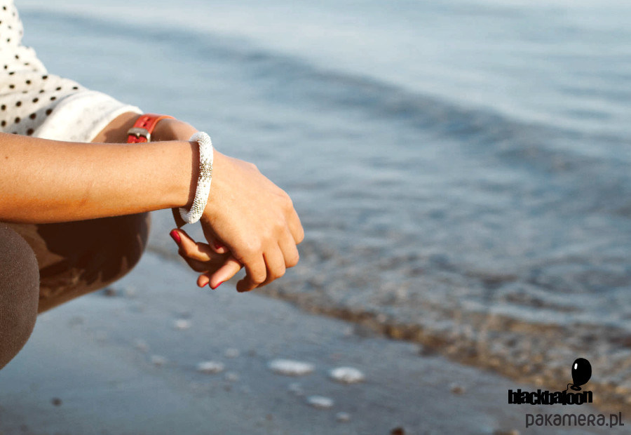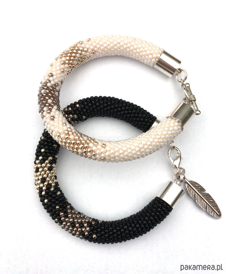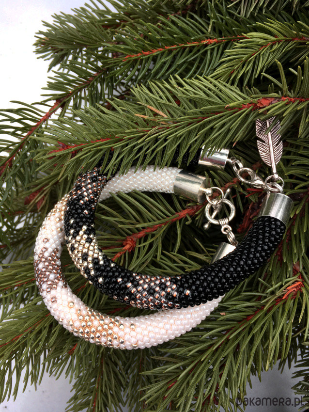 Dostępna jest również podobna bransoletka w dominującym kolorze czarnym. Obie bransoletki mogą stanowić efektowny komplet.