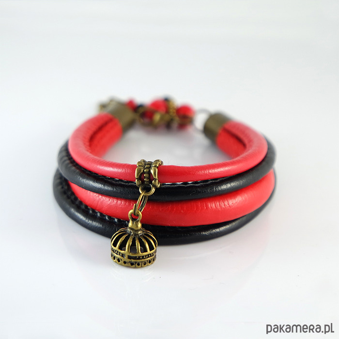 Bransoletka - Korona - czarna, czerwona