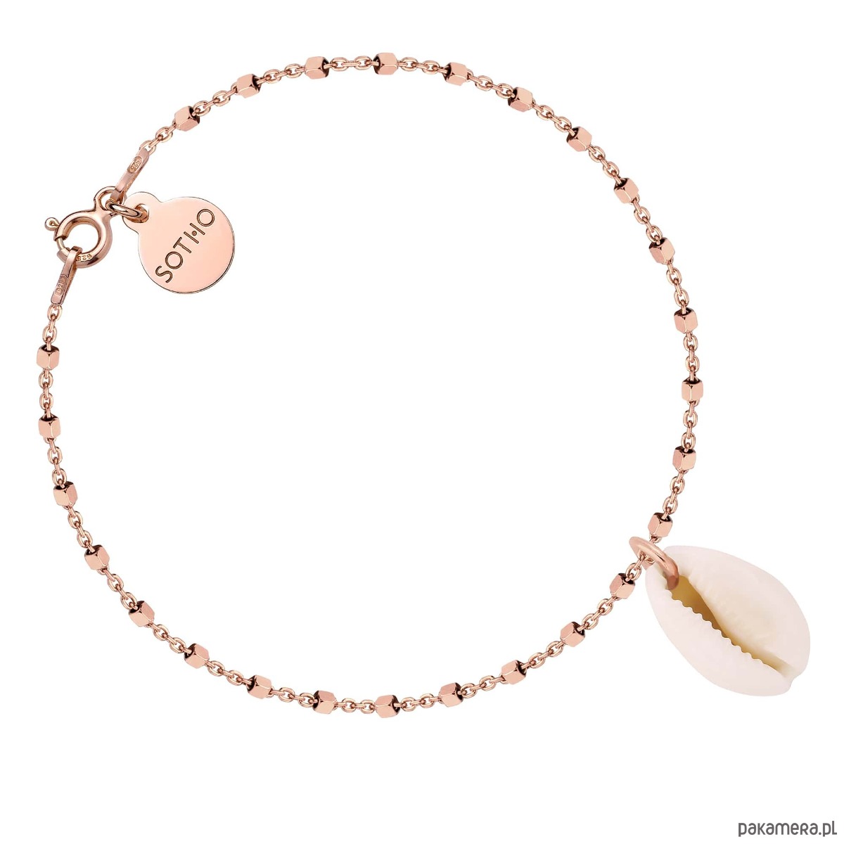 Bransoletka kosteczkowa z różowego złota z muszelką