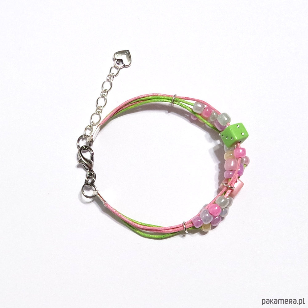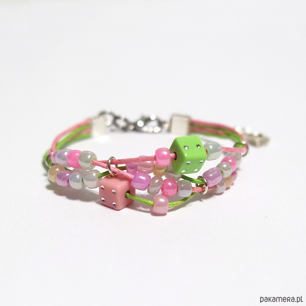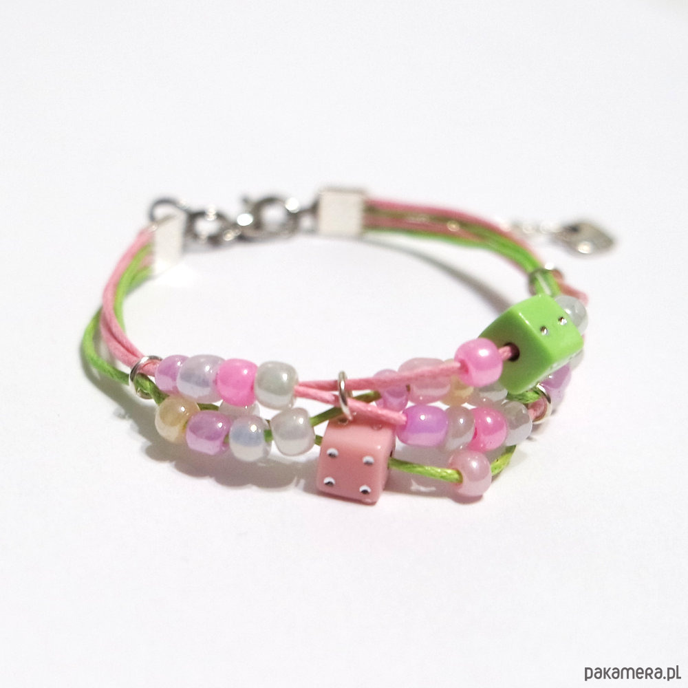 Bransoletka - Kostki do gry - róż, zielony, pastelowa