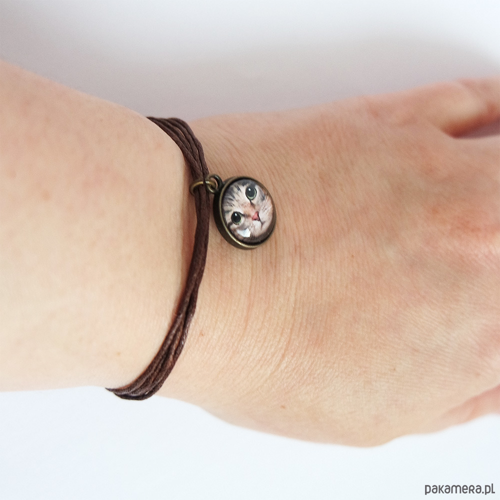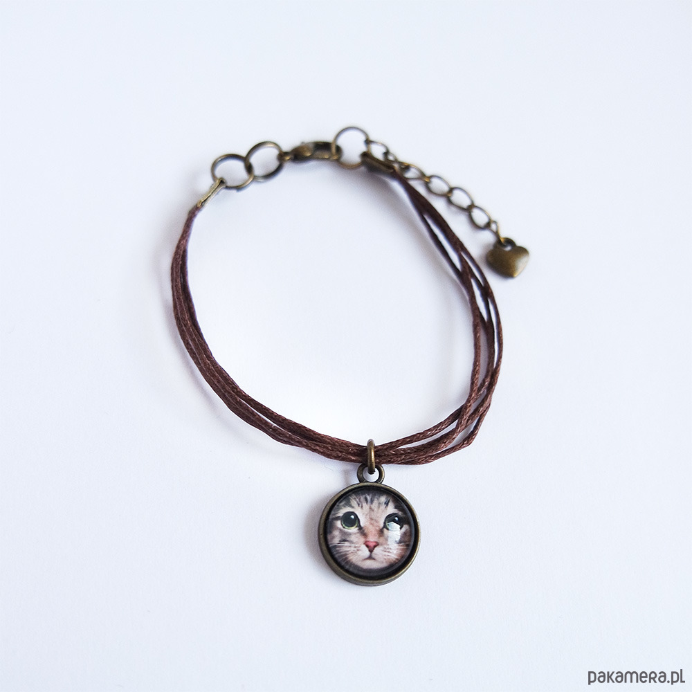 Bransoletka - Kot tygrysek - brązowa, sznurki