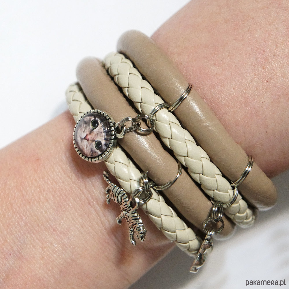 Bransoletka - Kot tygrysek - owijana, beż i krem
