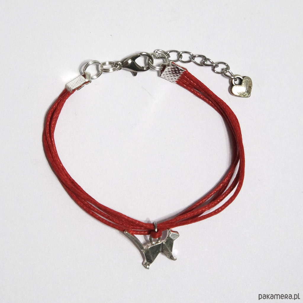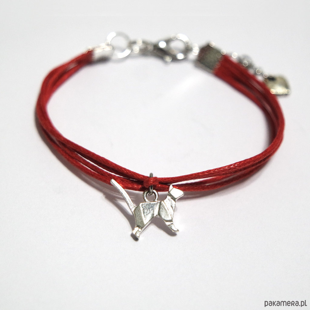 Bransoletka - Kotek origami - sznureczki, czerwona