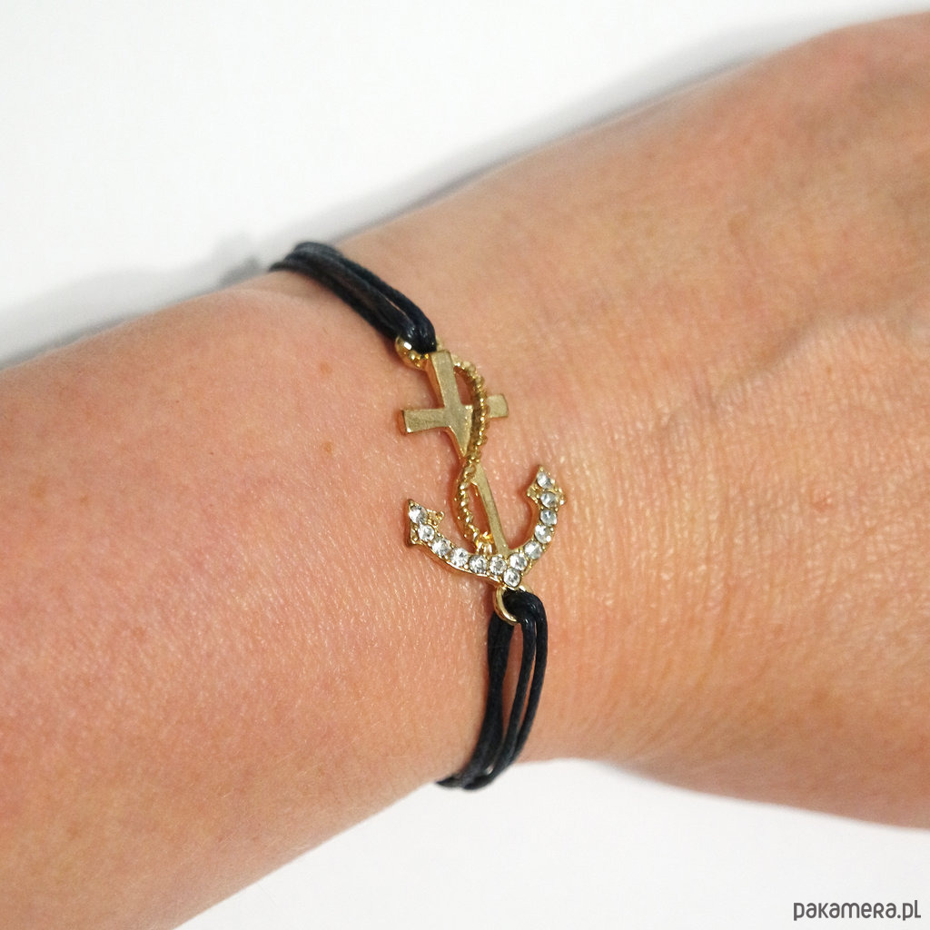 Bransoletka - Kotwica, krzyżyk - sznureczki, kryształki