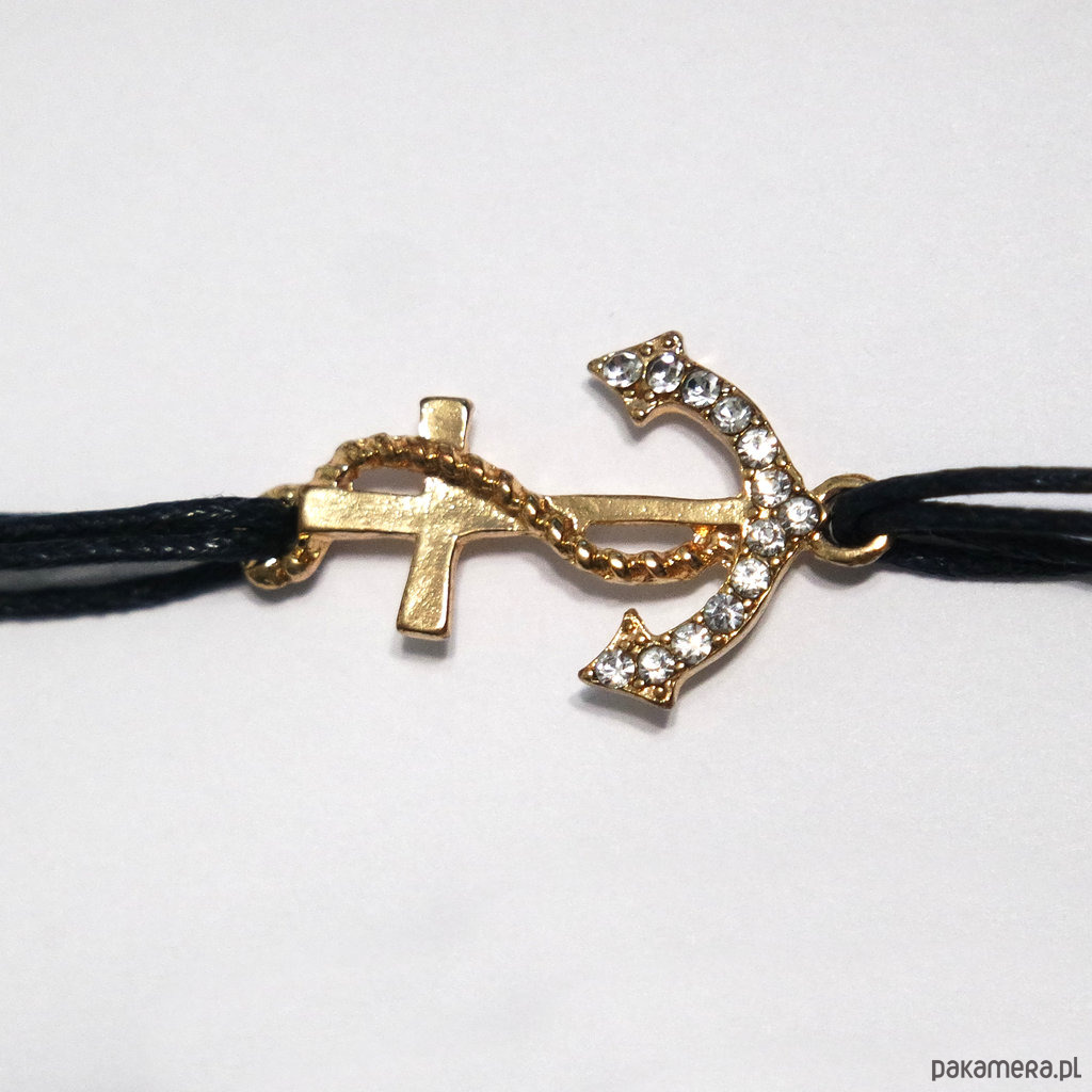 Bransoletka - Kotwica, krzyżyk - sznureczki, kryształki