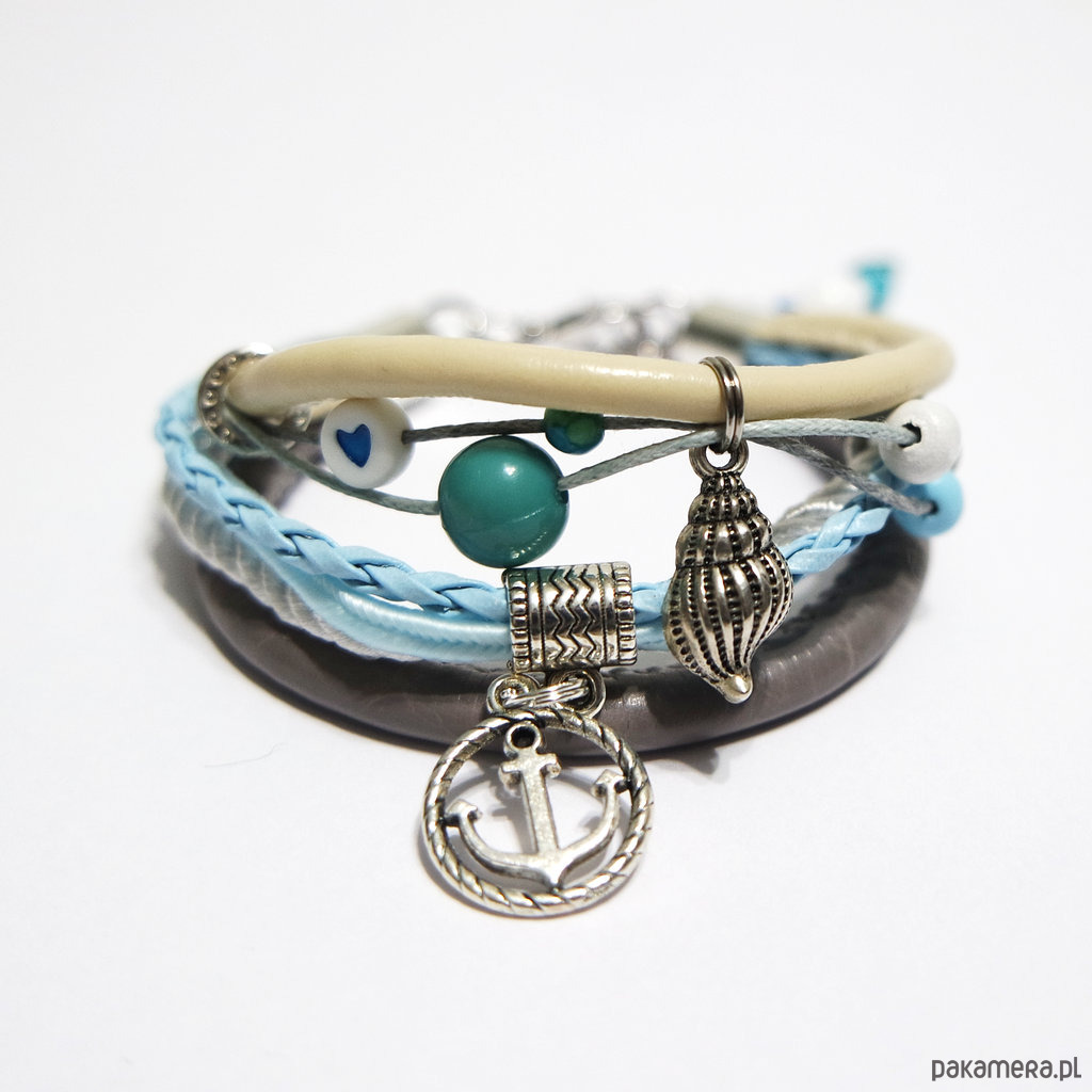 Bransoletka - Kotwica, muszelka - rzemienie