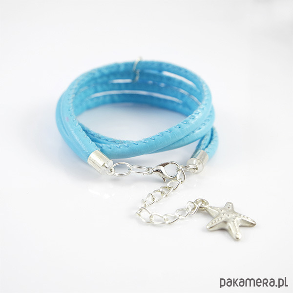 Bransoletka wykonana jest z rzemieni z eko-skóry.