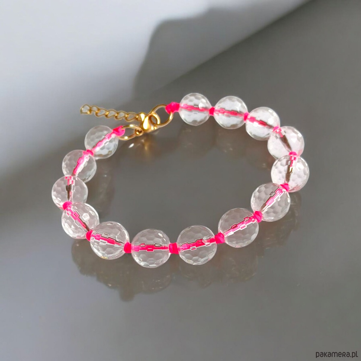 Bransoletka : kryształ górski : hot pink : supełkowana