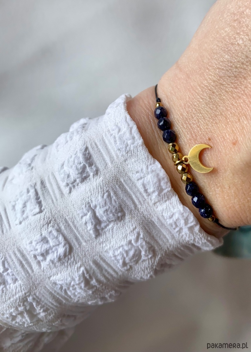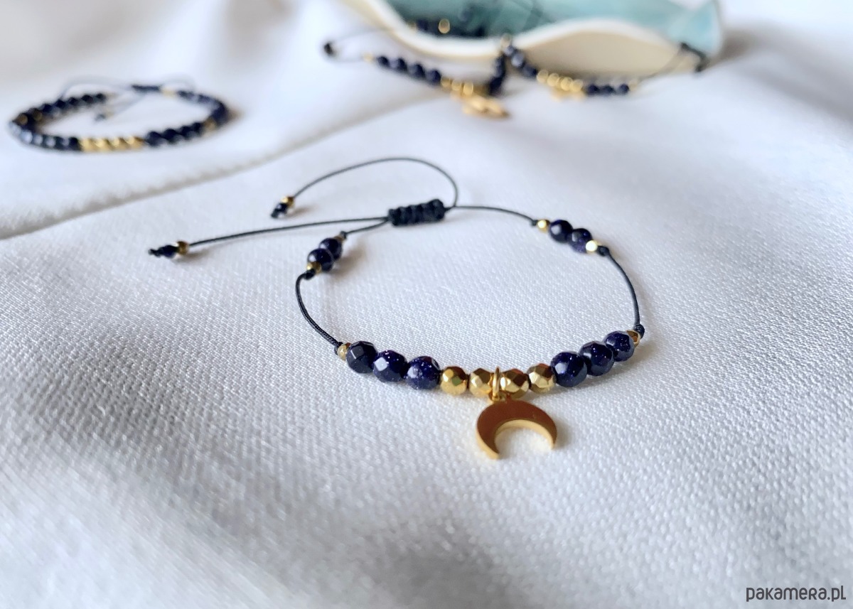 ▪️Użyte kamienie są naturalne i starannie wyselekcjonowane, ich wielkość wynosi około 4mm. Złote przekładki to hematyty oraz księżyc ze stali chirurgicznej wielkości 7mm.