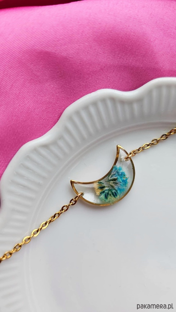 Bransoletka księżyc z turkusową gipsówką
