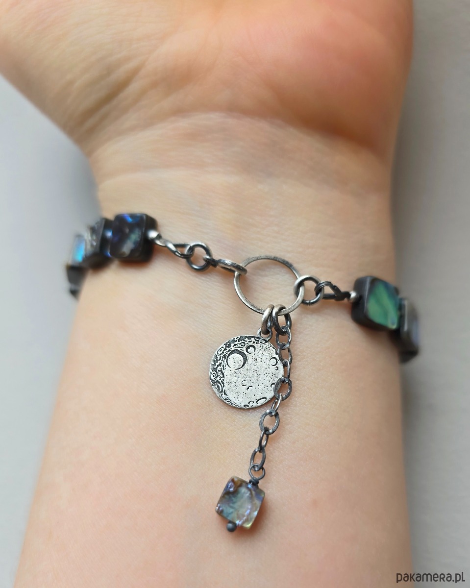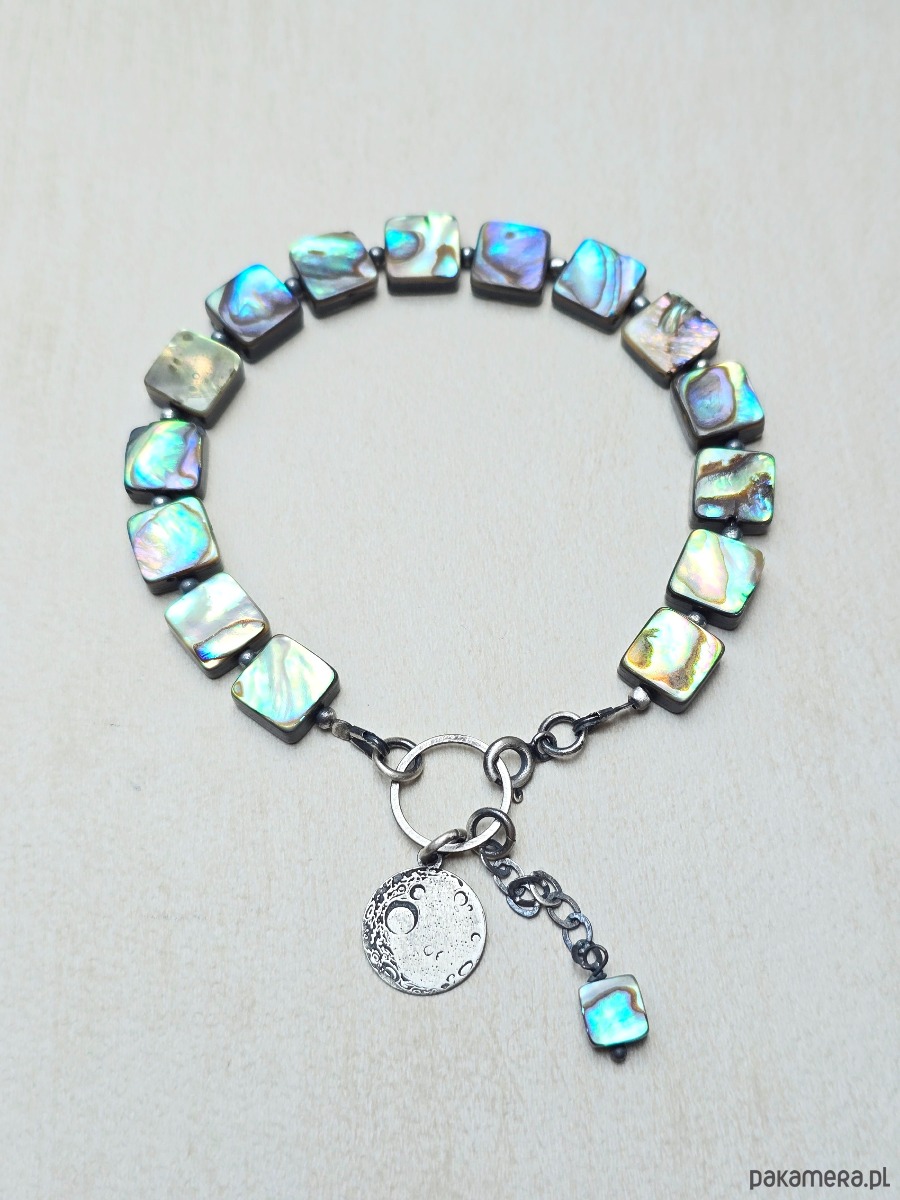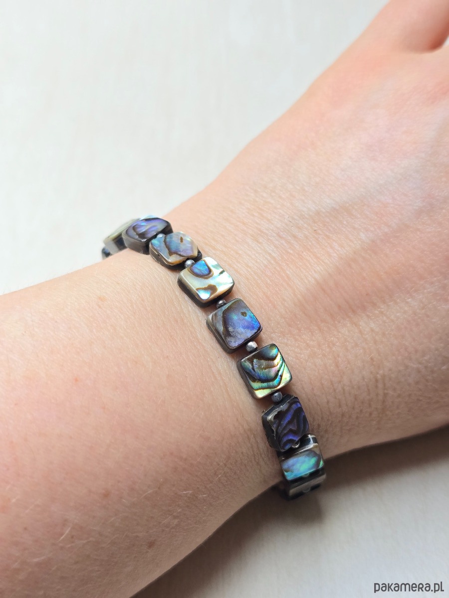 Cudownie mieniąca się, piękna bransoletka z muszli paula.