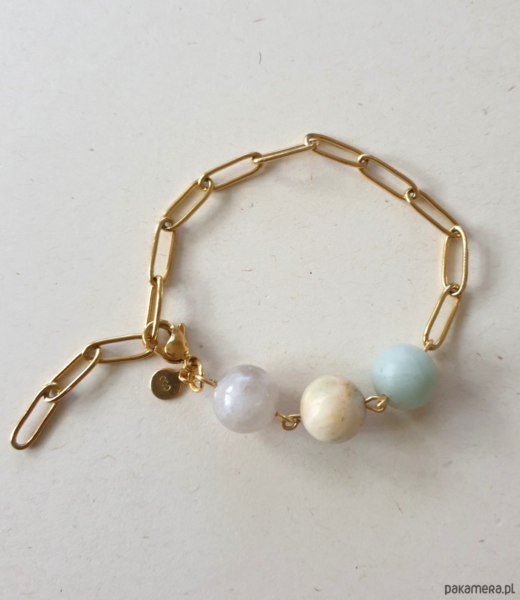 Bransoletka KULKA 3 kamień księżycowy, akwamaryn, amazonit