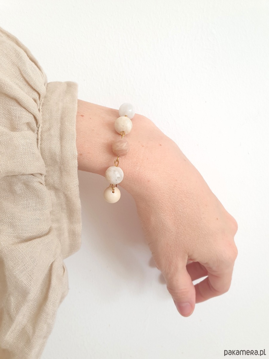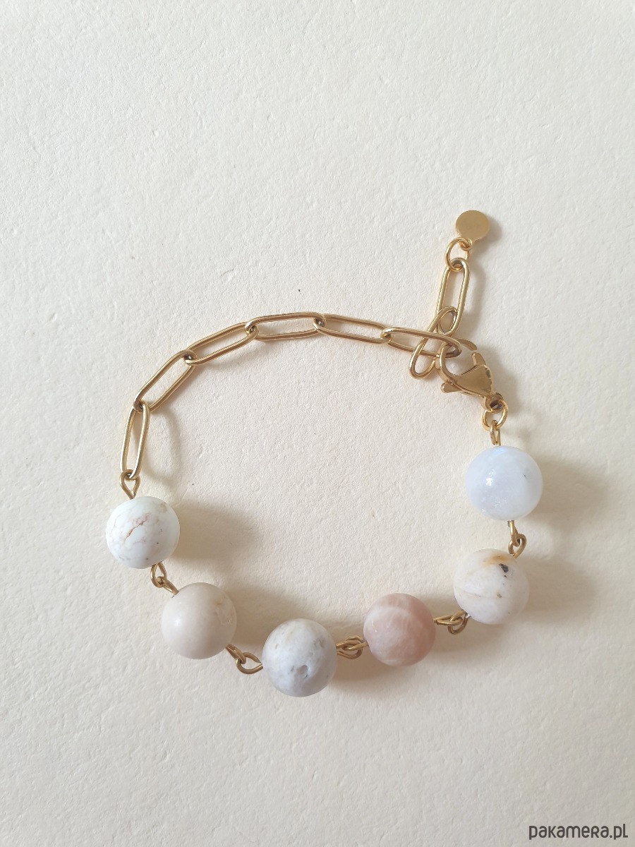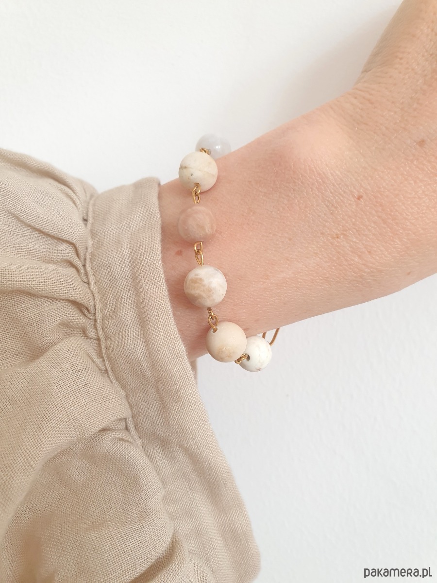 Bransoletka KULKA 6 , kamień księżycowy, słoneczny, kamień rzeczny, howlit