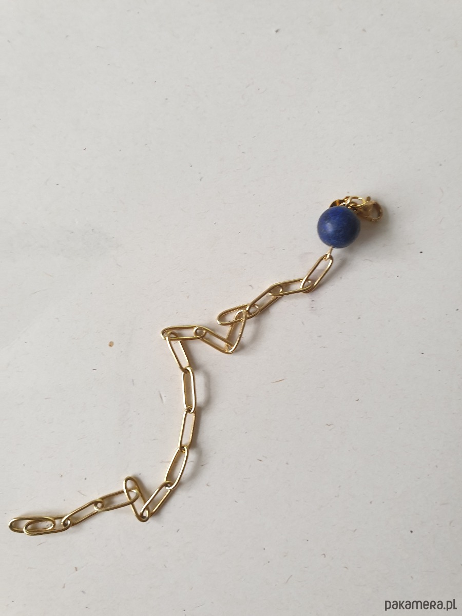 Minimalistyczna delikatna bransoletka KULKI. Tworzona ręcznie z kamieni naturalnych, łańcucha i elementów ze stali szlachetnej pozłacanej (antyalergicznej) W tej - matowa kulka lapis lazuli.