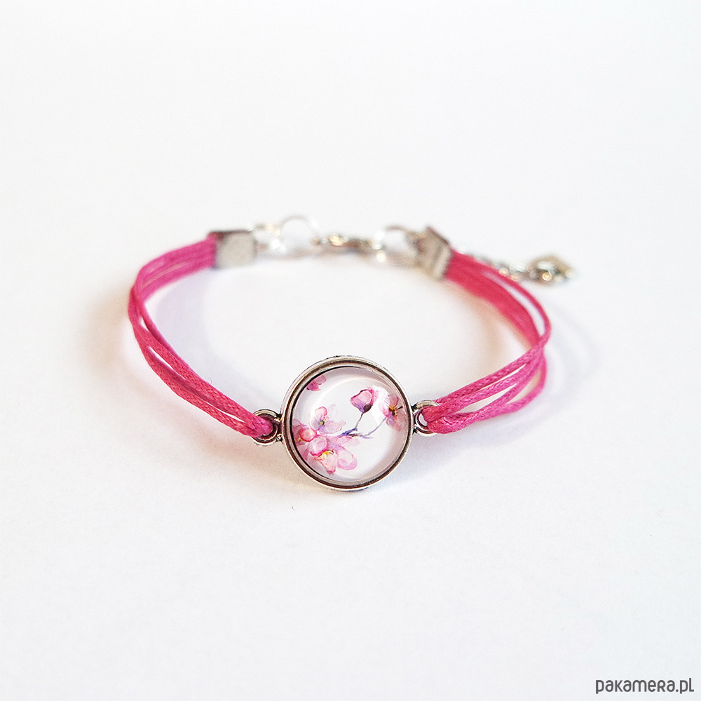 Bransoletka - Kwiat wiśni - ciemny róż, sznurki