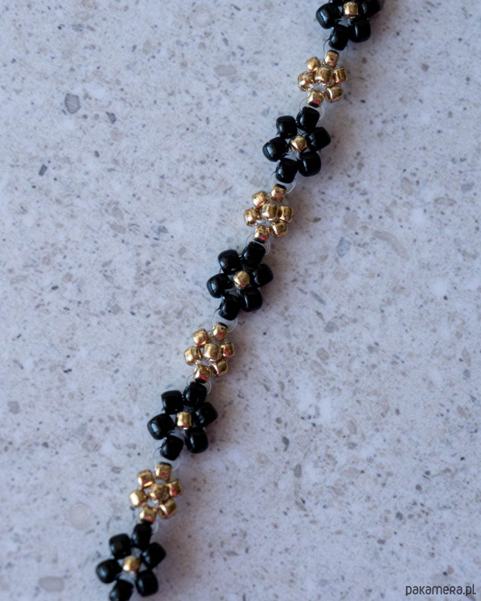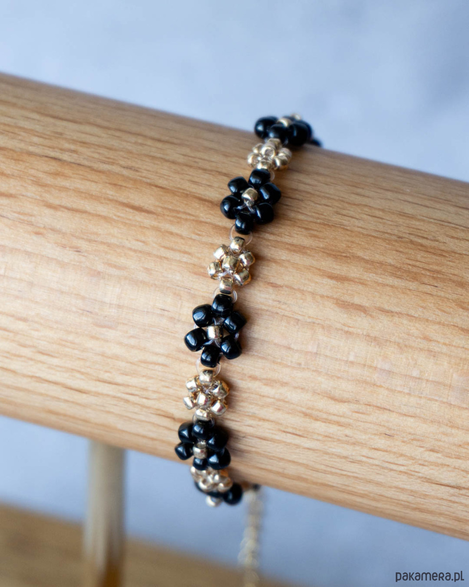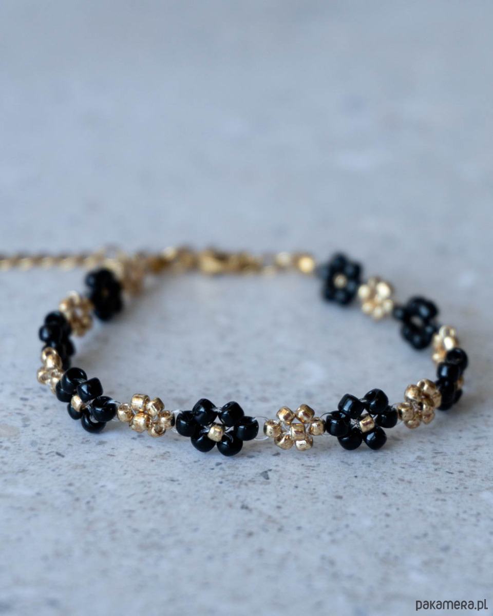 Bransoletka kwiatki czarne złote