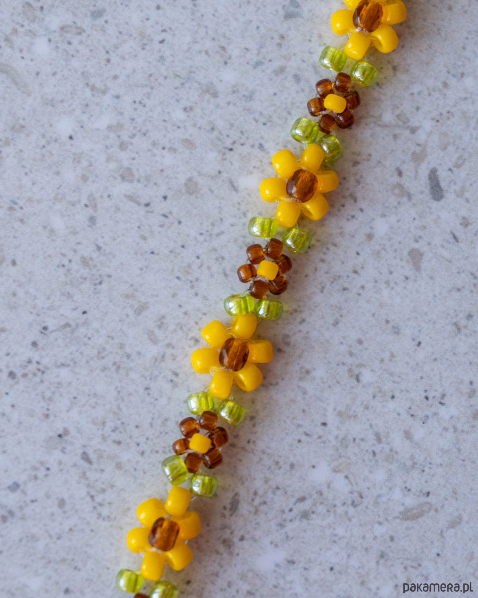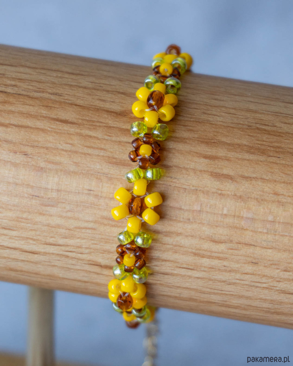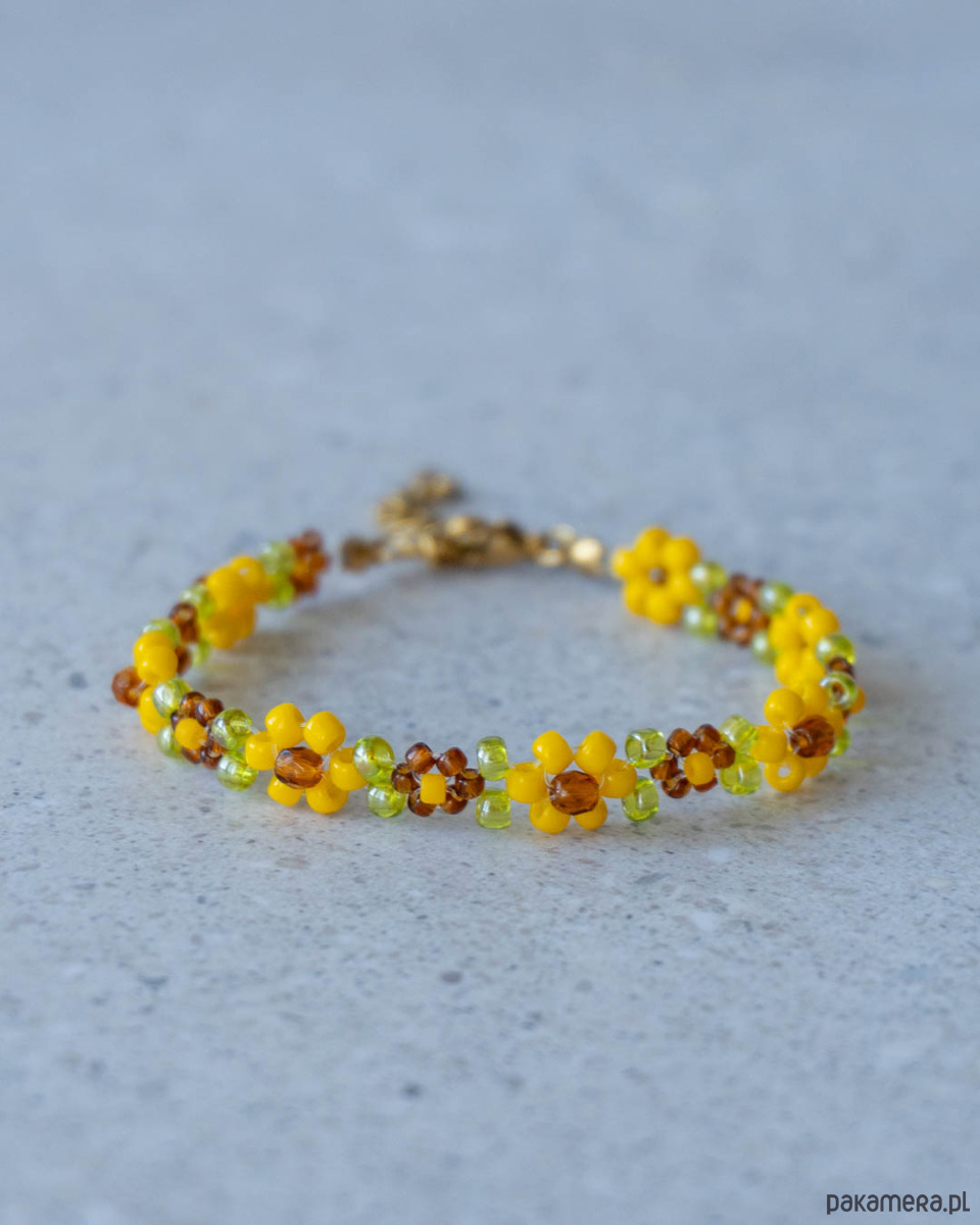 bransoletka kwiatki ze szklanych japońskich koralików TOHO, ręcznie wyplatana